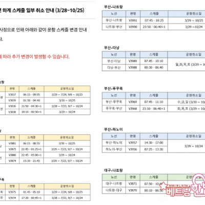 비엣젯 하계운항 축소 관련