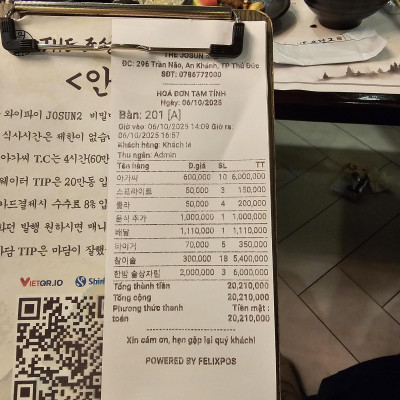 오늘 조선 영수증