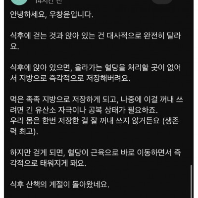 식사 후 산책을 권장하는 의사 유튜버