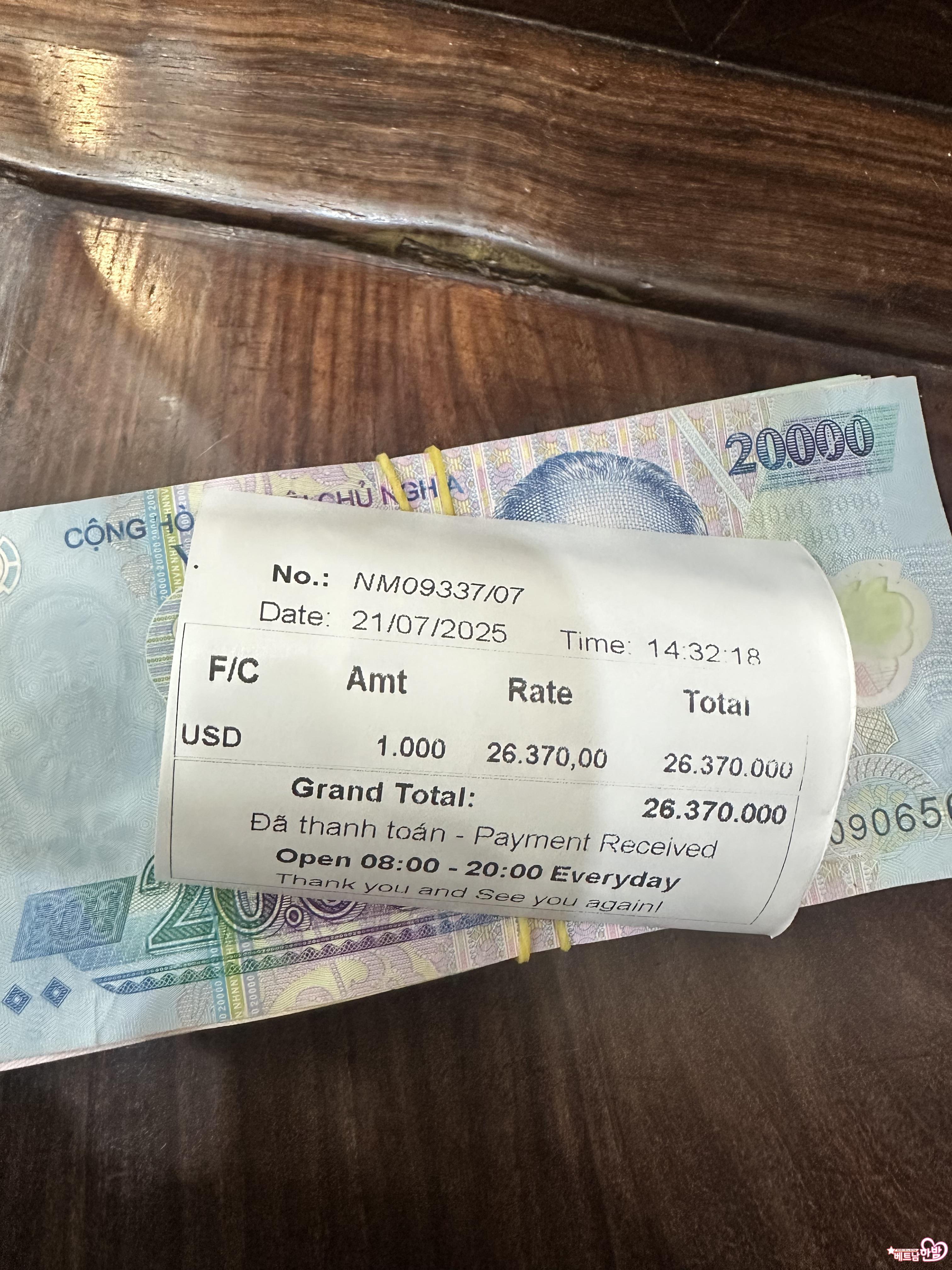 호치민 오늘자 흥롱 환율..