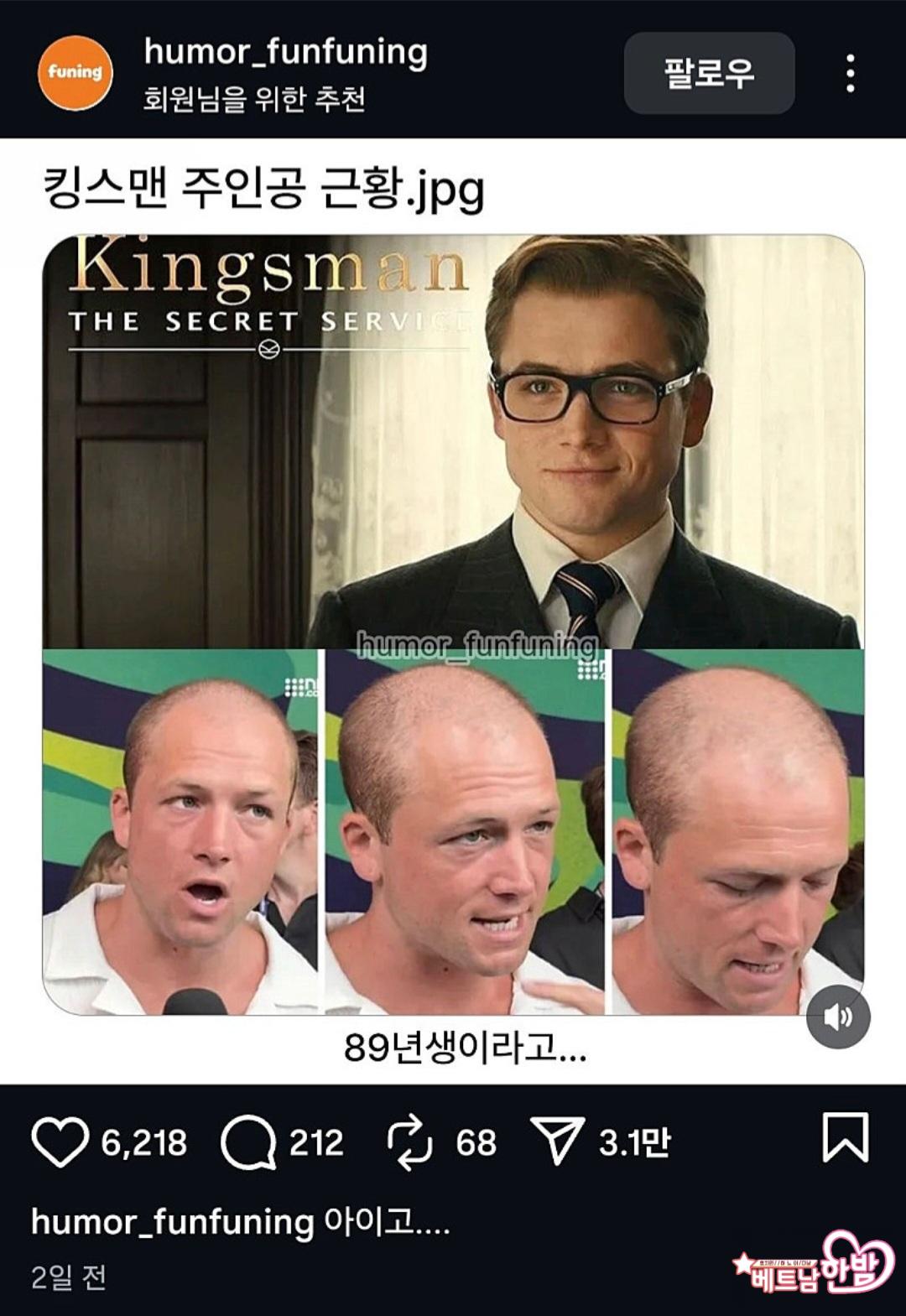 킹스맨 주인공근황이라네요