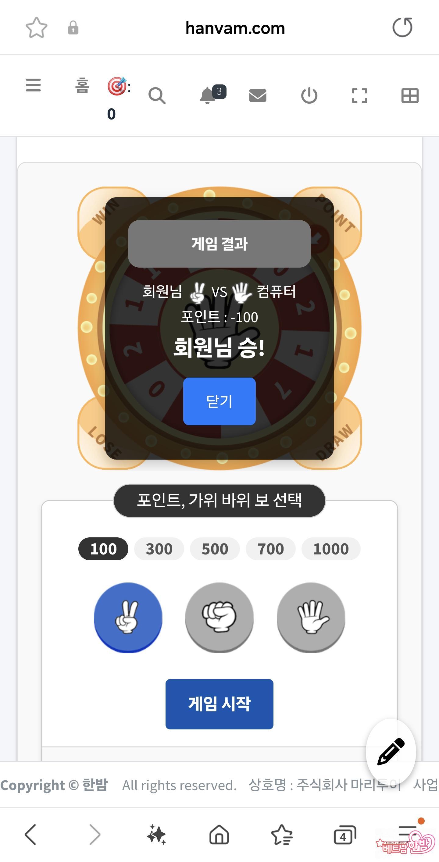 가위바위보 게임 이겨도ㅜㅜ