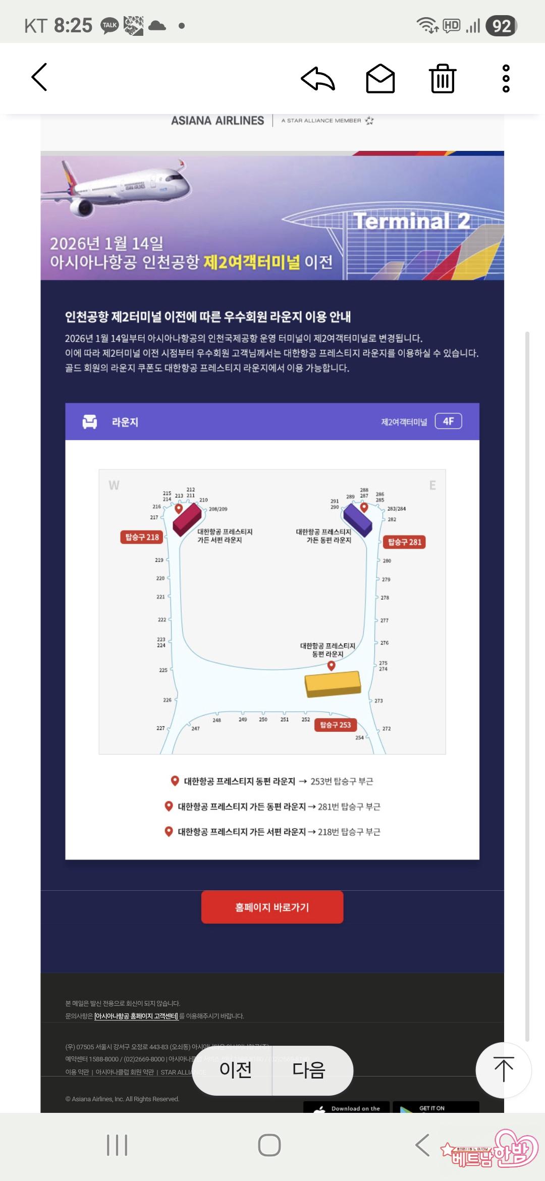 아시아나 2청사로 변경 후 라운지가...