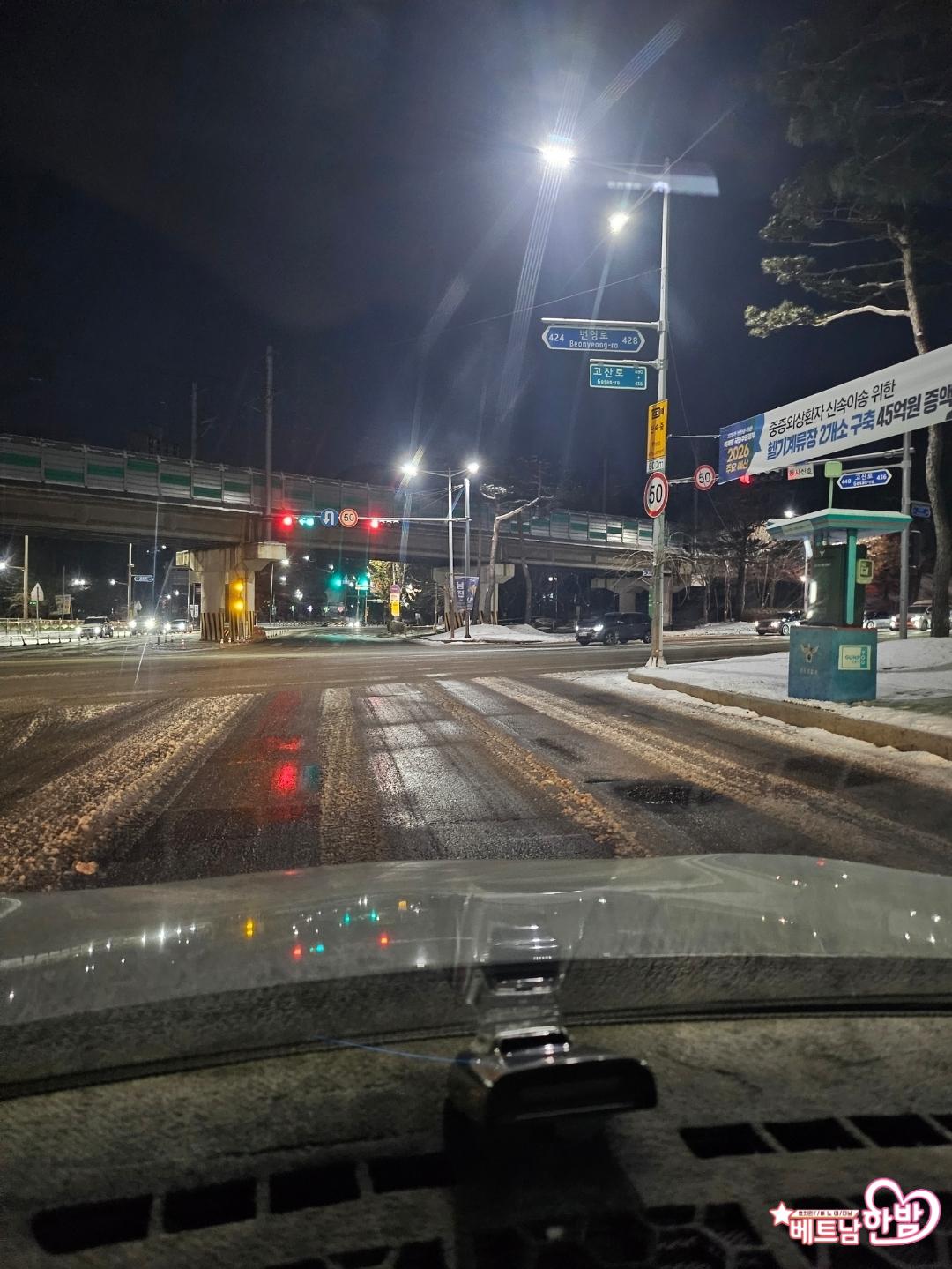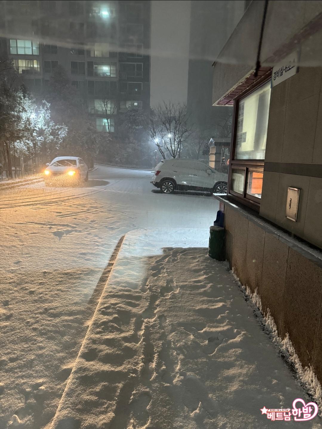 작년에 눈 올때 출국
