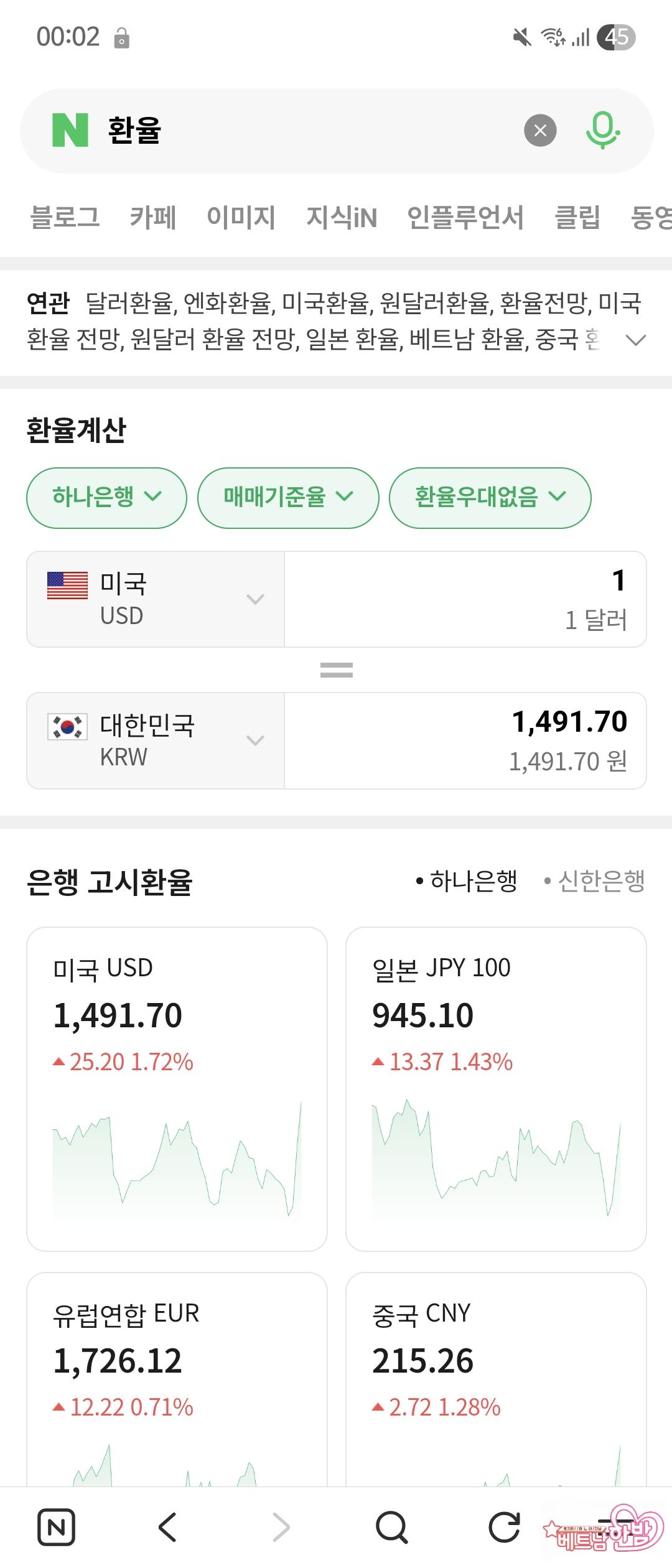 21시 현재 노이바이공항 달러동 환율