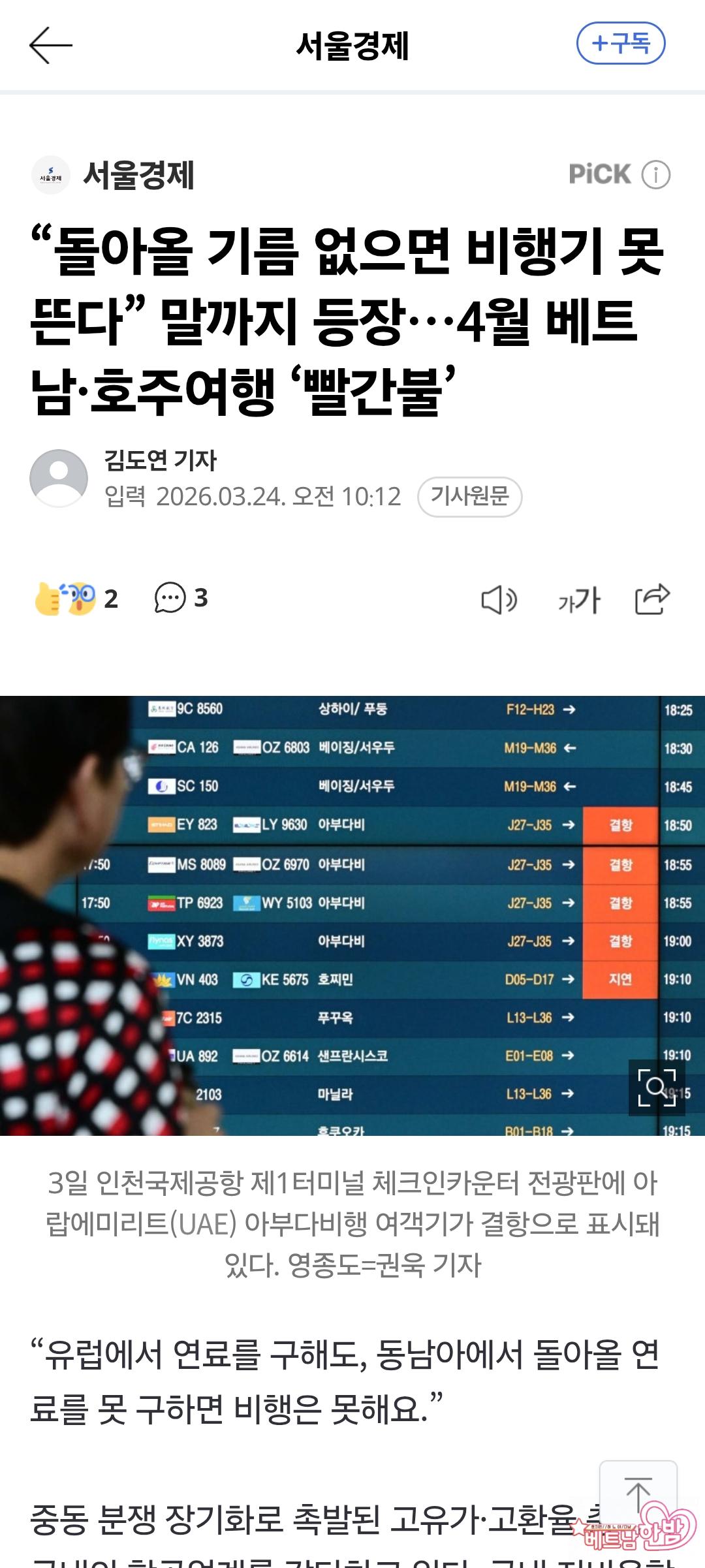 베트남 항공 5월 감편 및 유류할증